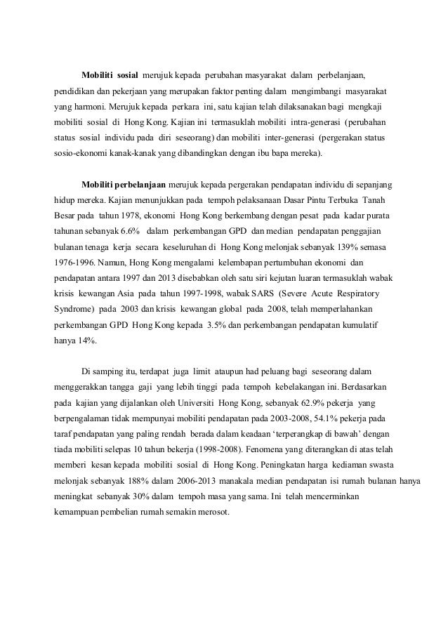 Media dan perubahan sosial di malaysia (media and social change in malaysia), hlm. Perbedaan kelas rasial, peristiwa ini terjadi di afrika selatan di masa lalu dimana ras kulit putih yang berkuasa tidak memberikan kesempatan ras. Level 6, setia perdana 2 setia perdana complex federal government administrative centre 62502 putrajaya. Mobilitas sosial merupakan salah satu konsep penting dalam sosiologi. The agenda is to get 80% of the nation's urban population to dwell within 400 metres of a reliable lpt service by year 2030, essentially making lpt services the.